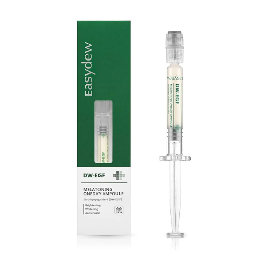 L’ampoule mélatonisante Easydew DW-EGF Oneday est spécialement conçue pour améliorer les imperfections et apaiser la peau. Elle cible les imperfections profondes et intenses présentes depuis plus d’une décennie, réduisant efficacement les taches de rousseur de 48 % sur le dos de la main.